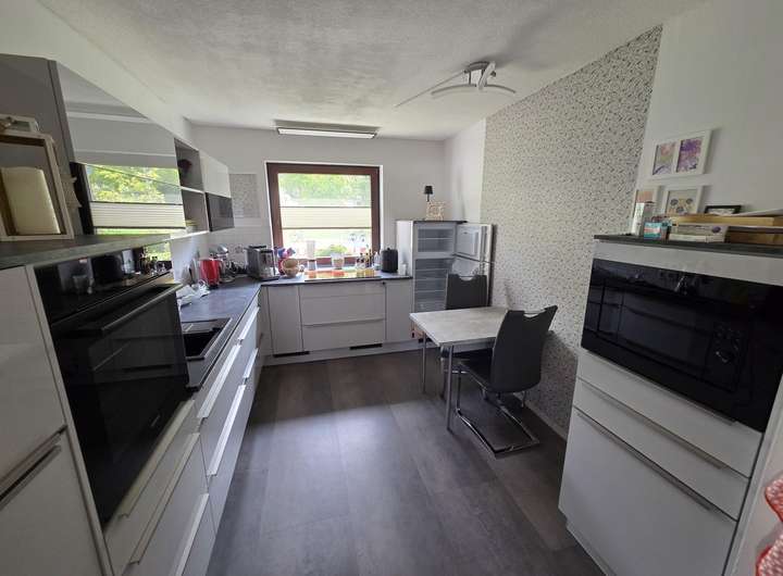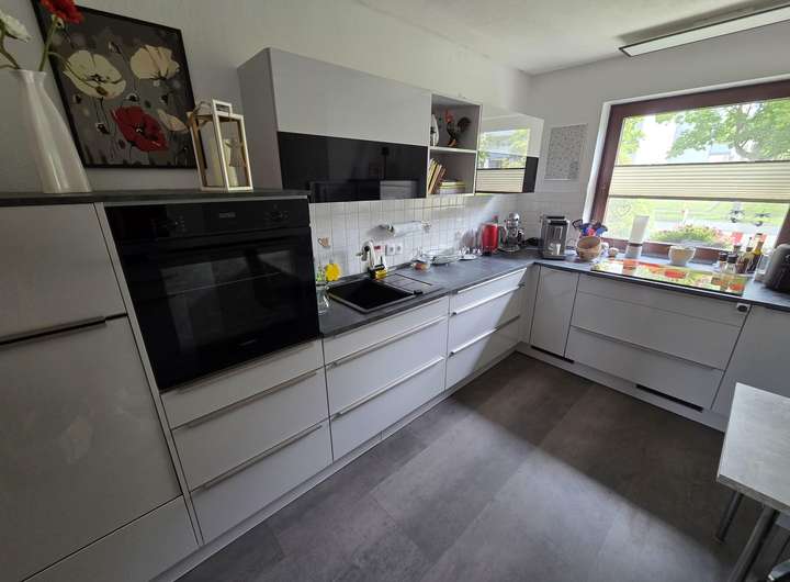 Im Jahr 2024 wurde eine neue Küche , u.a. mit Induktionskochfeld, Backofen und Geschirrspüler auf mittlerer Höhe, von einem örtlichen Fachhändler eingebaut. Diese gehört zum Haus und ist im Kaufpreis inbegriffen.
