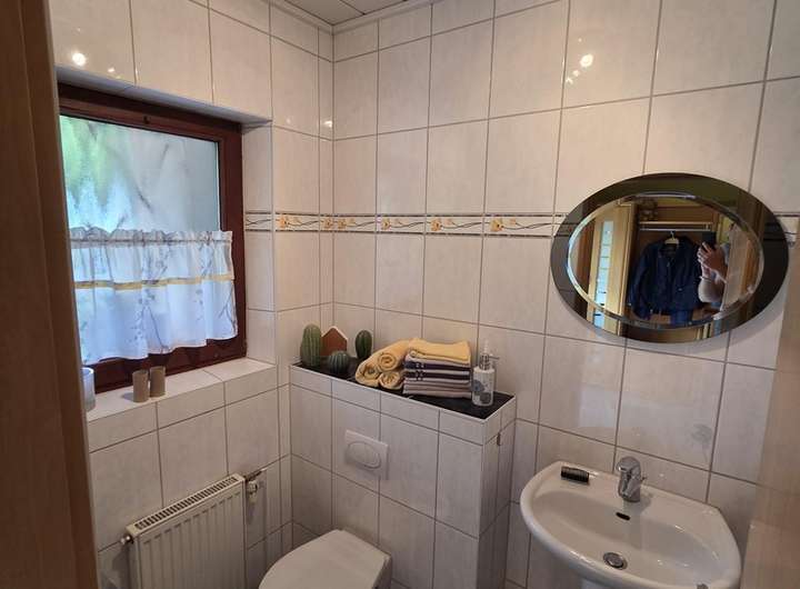 Die Schlafzimmer befinden sich im Obergeschoß neben dem im Jahre 2006 sanierten Hauptbadezimmer mit Schneckendusche und 2 getrennten Waschbecken. Auch das Gäste-WC im Erdgeschoß wurde 2006 komplett renoviert.