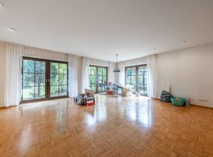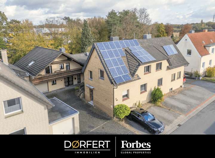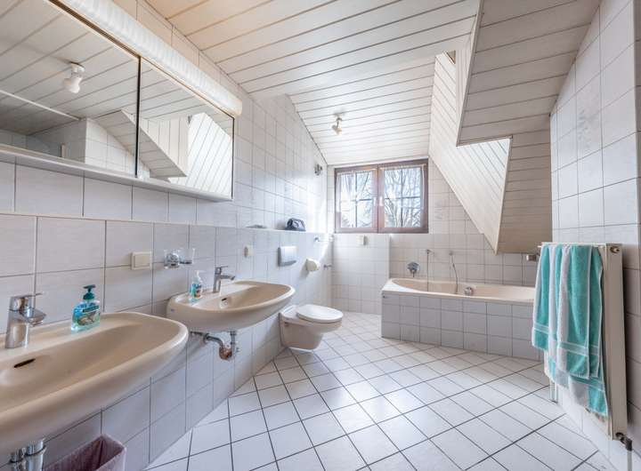 Das Einfamilienhaus bietet ca. 180 m² Wohnfläche und beeindruckt mit einer großen Garage und einem ausgebauten, wasserdichtem Keller, der vielseitig nutzbar ist. Hier finden sich ein stilvoll gestalteter Partyraum, ein Hobbyraum sowie diverse Versorgungsräume, alle in einer sicher gestalteten „bombensicheren“ Betonwanne, die auch bei Unwetter trocken bleibt. Das Erdgeschoss glänzt mit einem großzügigen Wohnzimmer mit Kachelofen und Fußbodenheizung sowie einem Büro, das einen separaten Eingang besitzt und sich ideal für gewerbliche Zwecke oder als zusätzlicher Wohnraum anbietet. Der Wäscheabwurfschacht im Obergeschoss ist eine praktische Ergänzung, die den Alltag erleichtert. Zwei Balkone und eine große Terrasse mit Garten laden zum Entspannen in der Natur ein.