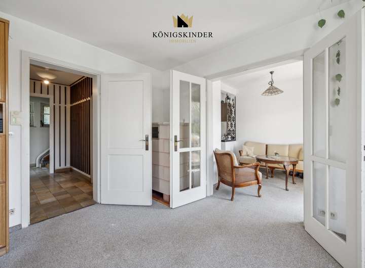 Schon beim Betreten des Grundstücks spüren Sie: Dieses Haus hat Geschichte und Herz. Das charmante Einfamilienhaus aus dem Jahr 1956 liegt auf einem liebevoll gepflegten Grundstück mit viel Grün, Platz zum Spielen und einem kleinen Gartenhaus, das sofort zum Träumen einlädt. Die breite Einfahrt bietet nicht nur Raum für mehrere Fahrzeuge, sondern wird schnell zum Lieblingsplatz der Kinder. Hier darf gerollert, Ball gespielt und einfach Kindheit gelebt werden.