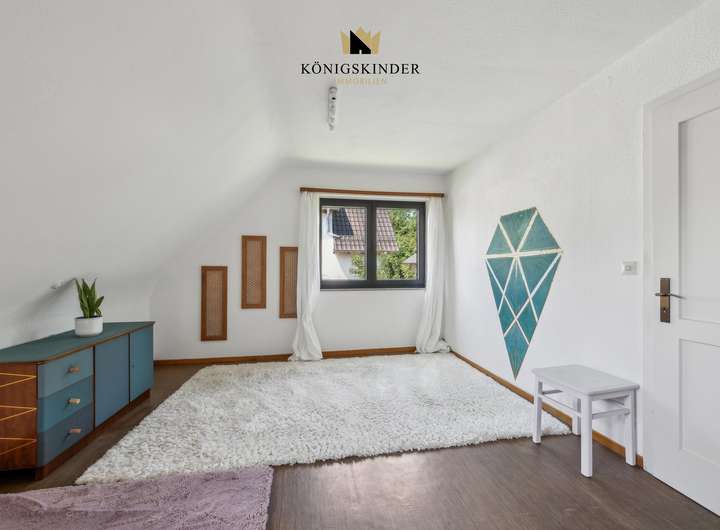 Im Dachgeschoss erwarten Sie drei behagliche Zimmer. Das ruhige Elternschlafzimmer und zwei liebevoll geschnittene Kinderzimmer. Freundlich, hell und voller Möglichkeiten. Das große Tageslichtbad mit elektrischer Fußbodenheizung bietet einen angenehmen Start in den Tag und sorgt für ein Stück Wellness im Alltag.