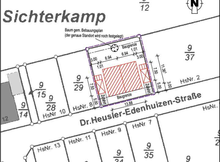 Das Grundstück befindet sich im Geltungsbereich eines gültigen Bebauungsplans, der eine solide Grundlage für Ihre individuelle Bauplanung bietet. Eine zweigeschossige Bauweise ist zulässig – eine entsprechende Baugenehmigung für ein Doppelhaus mit zwei Vollgeschossen liegt bereits vor und kann auf Wunsch übernommen werden. Damit ist der Weg zu Ihrem Bauvorhaben bereits geebnet, und einer zeitnahen Umsetzung steht nichts im Wege.