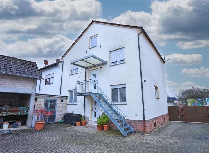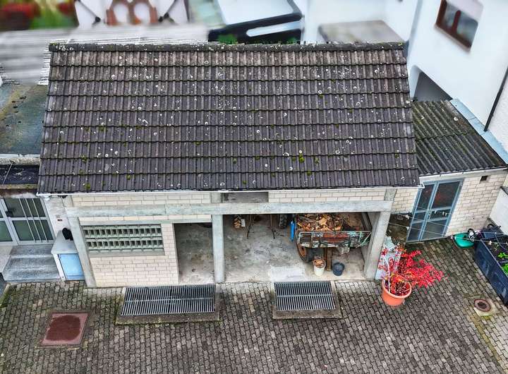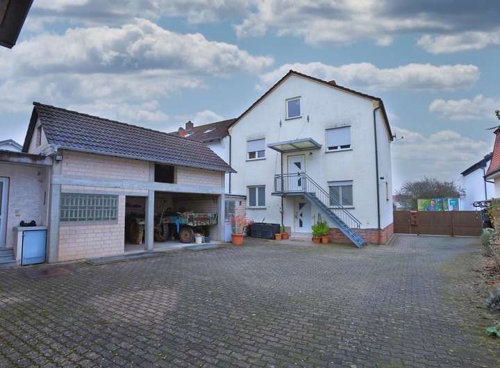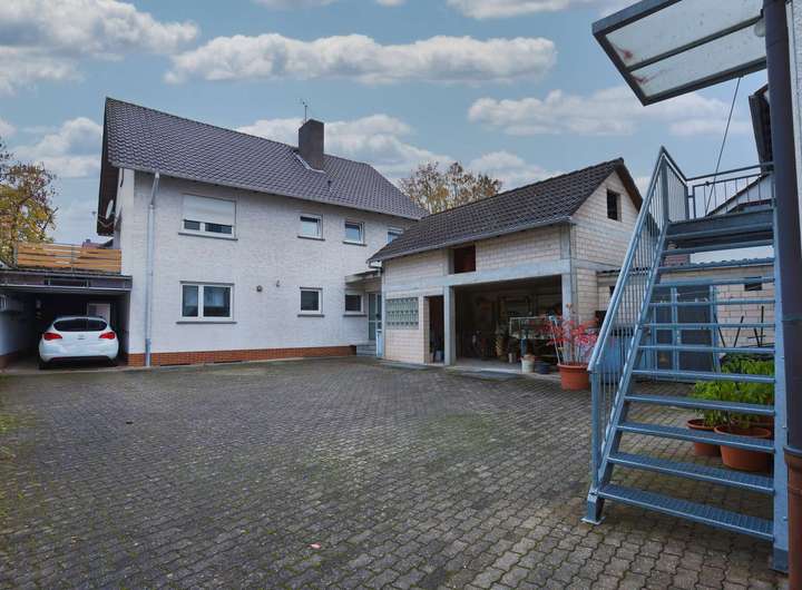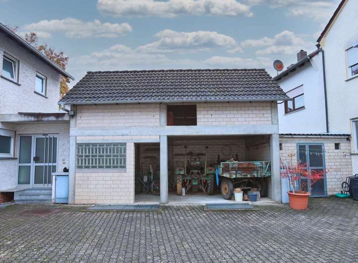 Das große Grundstück bietet vielfältige Nutzungsmöglichkeiten: Der gepflasterte Innenhof ermöglicht die Unterbringung mehrerer Fahrzeuge und schafft gleichzeitig eine angenehme Zufahrtssituation. Nebenflächen und ein Nebengebäude bieten zusätzliche Lager- oder Werkstattmöglichkeiten. Darüber hinaus steht ein Gartenbereich zur freien Gestaltung zur Verfügung. Zwei Garagen – eine davon ebenfalls unterkellert – runden das attraktive Gesamtangebot ab.