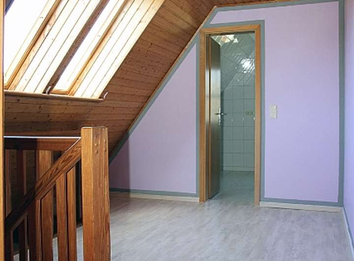 Die Einliegerwohnung mit separatem Eingang verfügt über ein Badezimmer mit Fenster und Badewanne im Erdgeschoss. Im Obergeschoss sind Wohnküche, ein Schlafzimmer sowie ein Spitzboden/Lagerraum zu finden.
