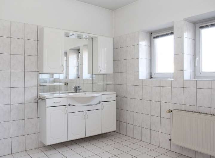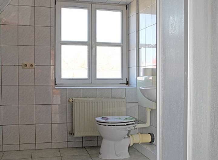 Die Hauptwohnung verfügt über 2 Bäder mit Fenster - ein Bad mit Dusche und ein Bad mit Badewanne. Des Weiteren sind 2 Schlafräume, Wohnzimmer mit Kamin, Veranda, Flur und Küche mit Zugang zum Garten vorhanden.