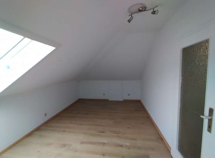 Im DG sind zwei weitere Zimmer, eins mit einem kleinen Balkon. Nun begeben wir uns ins UG. Hier finden Sie ein Bad, ein Zimmer mit Küchenanschlüssen und einen Abstellraum.