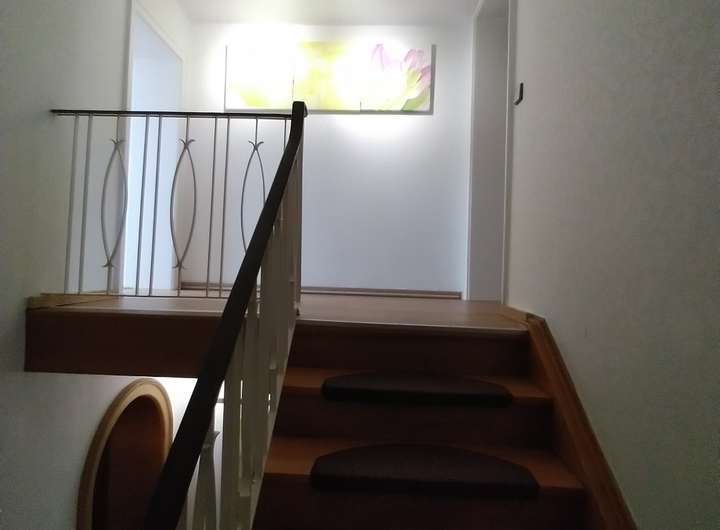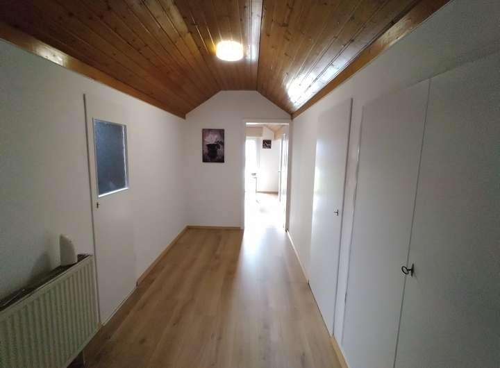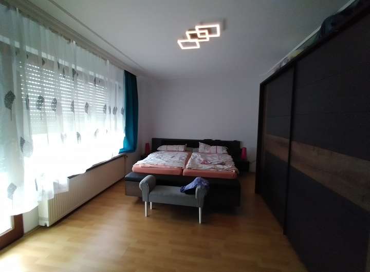 Das Einfamilienhaus empfängt uns mit einer einladenden Diele, ein Bad und zwei Schlafzimmern. Im OG sind vier Schlafzimmer, eins mit Balkon, ein Duschbad, ein Gäste-WC, ein Esszimmer und ein sehr großes Wohnzimmer mit Ausgang auf die ca. 50m² große Terrasse.