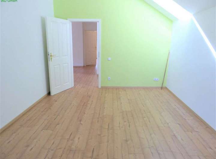 Über eine herrschaftliche Holztreppe gelangen Sie ins Obergeschoss. Hier erwartet Sie ein 5,44 x 3,85 Meter großer Flur. Links befinden sich zwei Kinderzimmer mit den Maßen 3,45 x 5,45 Meter und 4,12 x 5,10 Meter. Auf der rechten Seite liegt ein weiteres Kinderzimmer (3,75 x 4,87 Meter), das einen Zugang zum Balkon bietet. Ein geräumiges Schlafzimmer (4,80 x 3,85 Meter) sowie ein Duschbad mit Fenster, Waschbecken und WC vervollständigen das traumhafte Wohnerlebnis im Obergeschoss.