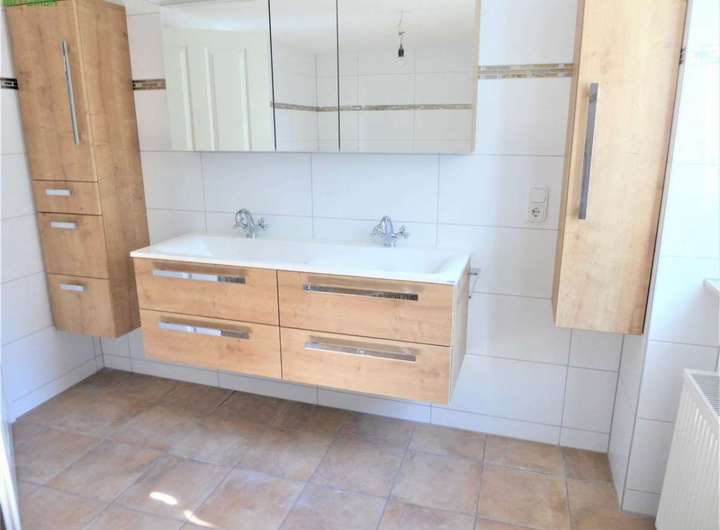 Im gesamten Haus wurden hochwertige Fliesen verlegt, die nicht nur strapazierfähig, sondern auch optisch ansprechend sind. In den Bädern sorgen sie für eine stilvolle Atmosphäre. Im Obergeschoss wurde hochwertiger Laminatboden verlegt, der den Räumen einen warmen und gemütlichen Charakter verleiht. Der Balkon wurde neu gefliest und mit einem Geländer versehen, um Ihnen einen sicheren Platz im Freien zu bieten.