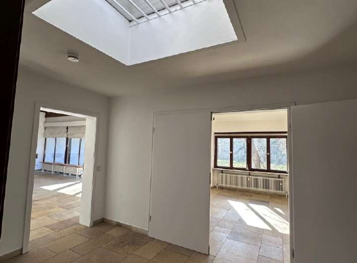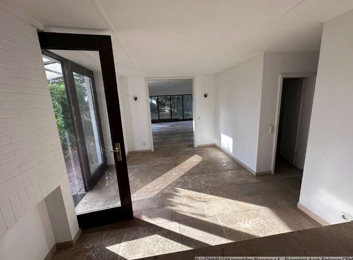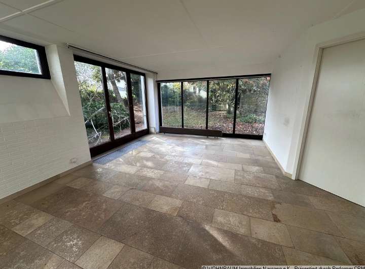 Einheit 1 rd. 237 m² Wohnfläche bestehend aus 5 Zimmern, Gäste-WC, Badezimmer mit Oberlicht zzgl. zwei Einzimmer-Einliegerwohnungen mit kleiner Küchenzeile und Badezimmer. Die beiden Einliegerwohnungen haben einen separaten Zugang und verfügen jeweils über eine große Terrasse. Die Wohnungen können bei Bedarf wieder an das Haupthaus angeschlossen werden. Das Haupthaus besticht durch seine Großzügigkeit. Das Wohnzimmer vefügt über eine große Fensterfront und bietet einen schönen Blick in den eingewachsenen Garten. Die große Terrasse aus Natursteinen und der offene Kamin runden das Angebot ab. Von den Schlafzimmern aus hat man ebenfalls einen direkten Zugang in den Garten. Ferner gehören zur Wohneinheit 1 verschiedene Kellerräume im Kellergeschoss und die große Doppelgarage.
