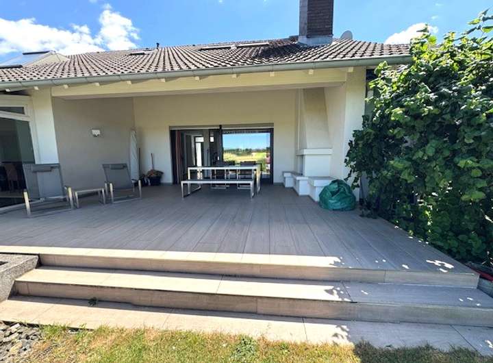 Traumlage in direkter Feldrandlage mit unverbaubarem Blick die keine Wünsche offen lässt. Einkaufsmöglichkeiten, Schule, Kindergärten, Ärzte, Gastronomie etc. sind vor Ort. Öffentliche Verkehrsmittel (Busse) sind fußläufig zu erreichen. Der Autobahnzubringer in alle Richtungen ist ca. 5 Autominuten entfernt