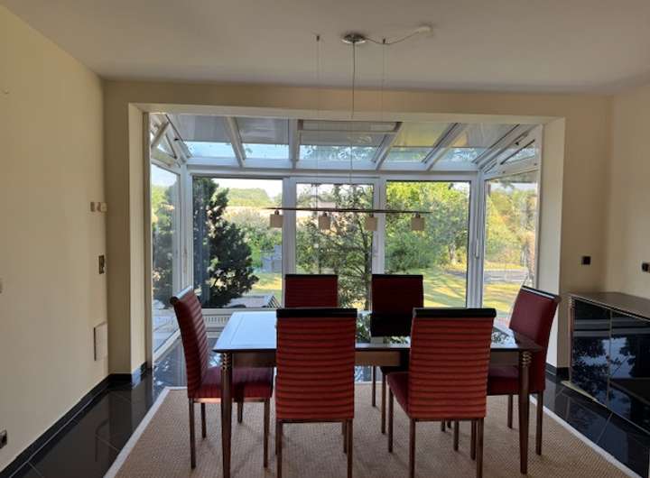 Aufteilung Haupthaus (Mitte) Erdgeschoss, Baujahr 1978: Diele, neues Gäste WC, großes Wohnzimmer mit Zugang auf die ca. 50m² große Terrasse und den wunderschönen großen Garten, großer Wintergarten mit Fernblick welcher als Essbereich genutzt wurde, Einbauküche.