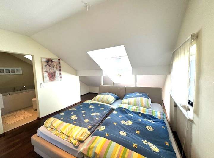 Obergeschoss: 3-4 Schlafzimmer eins davon mit direkten Zugang zum Tageslichtbad 1, begehbares Umkleidezimmer, Tageslichtbad 2.