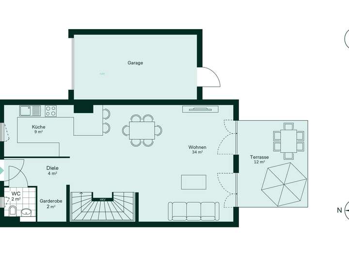 Doppelhaushälfte mit Südterrasse, Keller und Garage