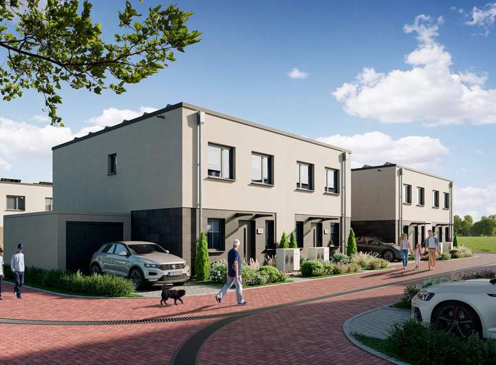 Diese moderne Doppelhaushälfte bietet auf zwei Etagen viel Raum für Alltag und Auszeiten. Im Erdgeschoss verbindet ein großzügiger Wohn- und Essbereich das Familienleben mit der sonnigen Südterrasse und dem Garten. Die offene Küche ist zentraler Treffpunkt, ein Gäste-WC und Platz für eine Garderobe ergänzen den Grundriss. Bodentiefe Fenster lassen viel Licht ins Haus. Im Obergeschoss erwarten Sie drei helle Schlafzimmer und ein Tageslichtbad mit Dusche und praktischem Handtuchheizkörper. Die Fußbodenheizung im ganzen Haus sorgt für ein angenehmes Raumklima. Im geräumigen Keller gibt es Platz für Hobbys, Vorräte oder Sportausrüstung. Ihr Auto parken Sie bequem in der Garage oder auf dem Außenstellplatz. Dank Luft-Wasser-Wärmepumpe und Effizienzhaus-Stufe 55 wohnen Sie nachhaltig und komfortabel.