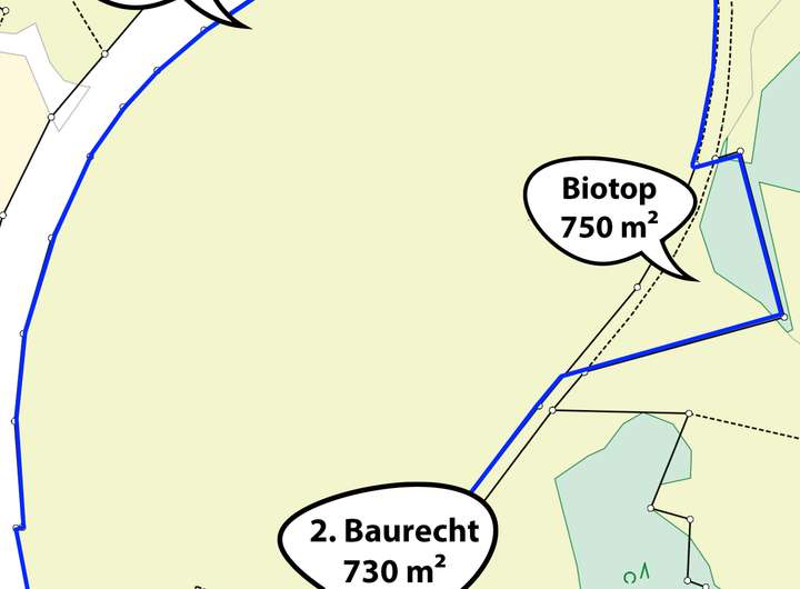 + Grundstück als ausgewiesenes Biotop - circa 750 m² Grundstücksfläche.