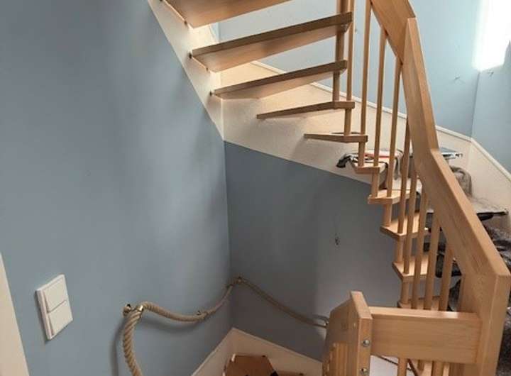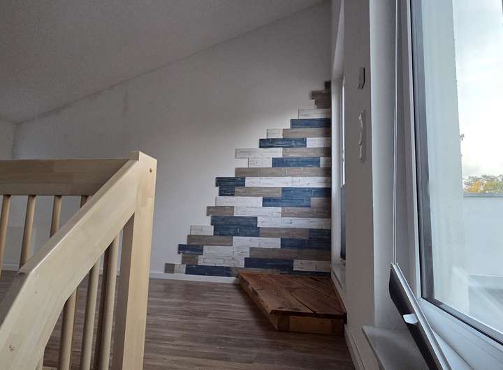 Das Haus verfügt im Erdgeschoss über ein Gäste-WC mit Fenster, einen Technikraum, welcher auch als Stauraum genutzt werden kann, da neben dem Speicher sehr viel Platz ist. Weiterhin befindet sich im Erdgeschoss der Küchenbereich, welcher zum Wohnzimmer offen gestaltet ist. Ein kleiner Garten zur Nutzung ist über das Wohnzimmer erreichbar. Im 1. Obergeschoss befindet sich das Schlafzimmer, ein weiterer Abstellraum in dem auch die Waschmaschine angeschlossen werden kann und das Hauptbadezimmer mit einer Badewanne und einer separaten Dusche. Im 2. Obergeschoss befindet sich ein Studio und die großzügige Dachterrasse. Das Haus ist mit Laminat bzw. Fliesen ausgestattet. Die Beheizung erfolgt über die vorhandene Luftwärmepumpe. Weiterhin verfügt das Haus über eine Fußbodenheizung.