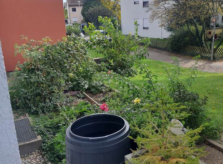 Große Terrasse und ca. 6 m2 Bodenfläche zur Anbau von Blumen oder Gemüse gehört ebenso zur Wohnung.