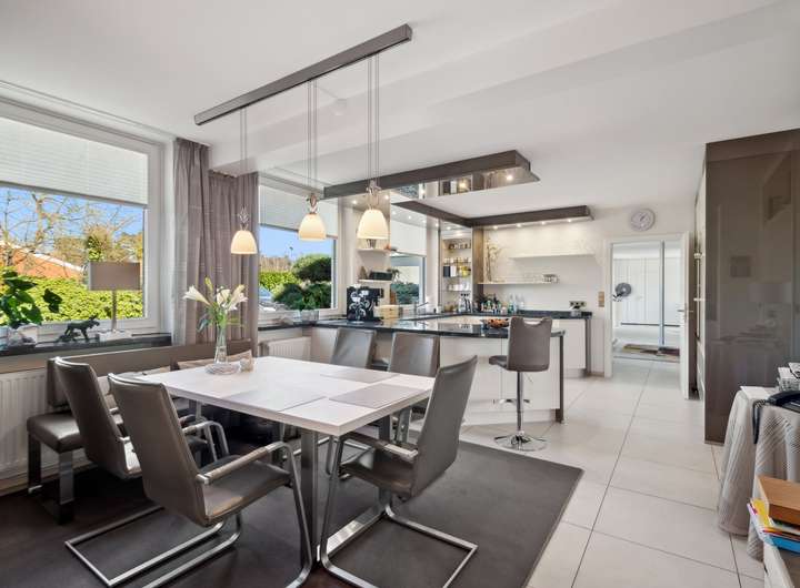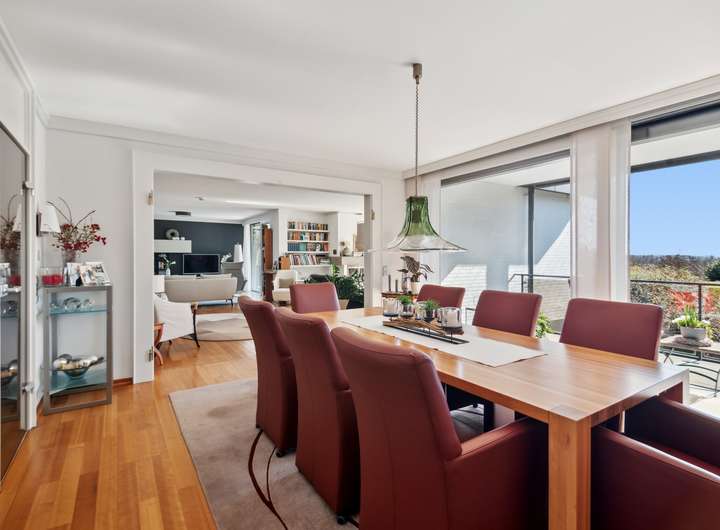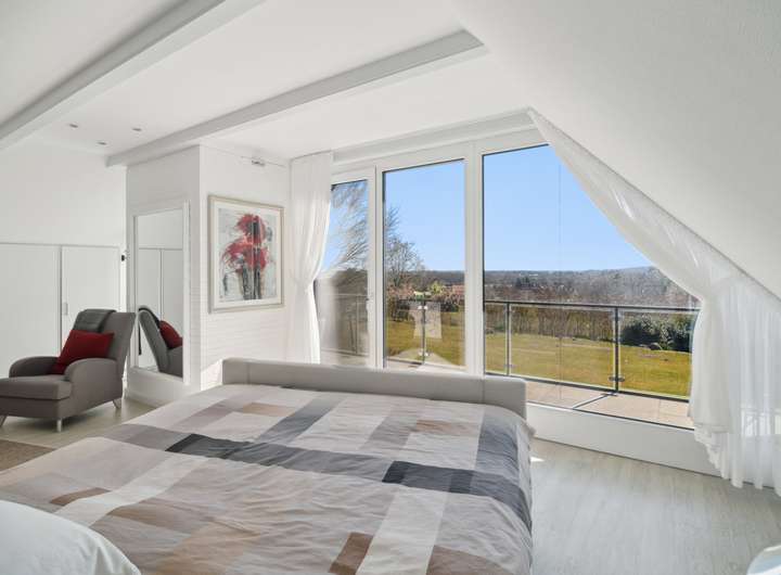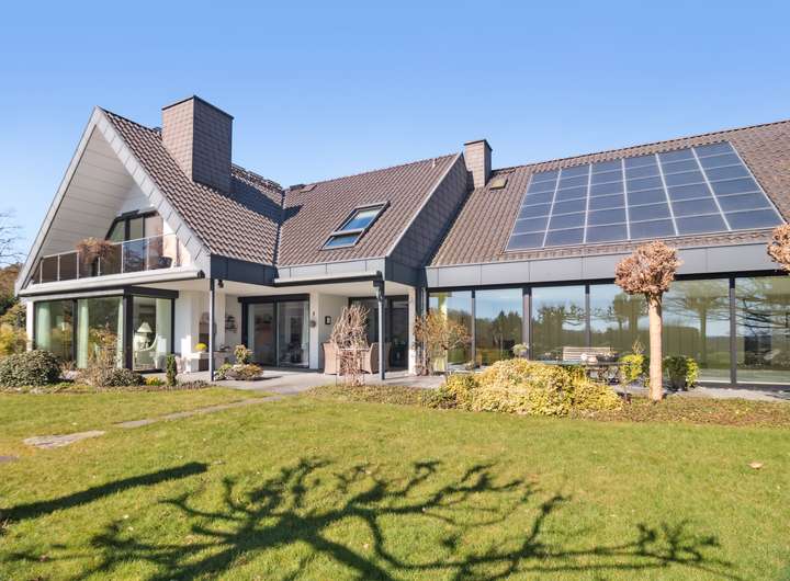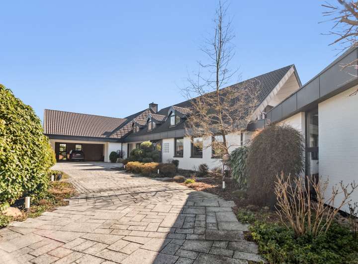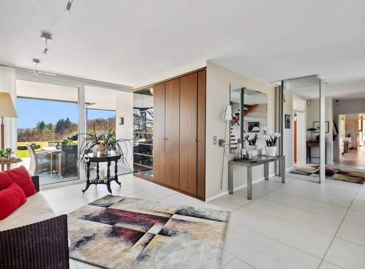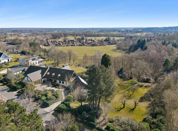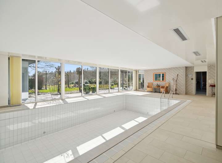 Dieses außergewöhnliche Anwesen auf einem 10.000 m² großen Parkgrundstück vereint exklusives Wohnen mit höchster Privatsphäre. In ruhiger und begehrter Lage bietet es einen unverbaubaren Panoramablick auf die umliegende Natur. Die harmonisch eingebettete Gartenlandschaft mit einem Pavillon, schafft eine perfekte Balance aus Ruhe und Schönheit. Die moderne Architektur und hochwertige Ausstattung verleihen dem Haus eine luxuriöse, komfortable Atmosphäre. Auf 436 m² Wohnfläche verteilen sich 11 Zimmer, die viel Raum für individuelle Gestaltung bieten. Herzstück des Hauses ist das großzügige Wohnzimmer mit Kamin. Das angrenzende Esszimmer eignet sich sowohl für repräsentative Anlässe als auch für entspannte Abende im privaten Kreis. Sechs Schlafzimmer mit großen Fenstern – teils mit Balkon oder Terrasse mit Außenkamin – bieten höchsten Wohnkomfort. Vier Badezimmer, eines davon en Suite, sind mit Rainshower Duschen, einer freistehenden Badewanne und hochwertigen Armaturen ausgestattet. Ein Highlight ist der große Innenpool, der von bodentiefen Fenstern umgeben ist und einen beeindruckenden Ausblick bietet. Dank moderner Pooltechnik, die vor kurzem erneuert wurde, Wärmepumpe und Solaranlage ist ganzjähriger Badespaß bei optimaler Temperatur garantiert – energieeffizient und nachhaltig. Das ca. 100 qm große Souterrain mit bodentiefen Fenstern kann als Homeoffice genutzt werden. Eine separate Einliegerwohnung mit eigenem Zugang bietet idealen Wohnraum für Gäste, Personal oder ein Au-pair – komfortabel und mit maximaler Privatsphäre. Das Haus ist mit modernster Technik ausgestattet, inklusive Personenaufzug, der für Barrierefreiheit sorgt, intelligenter Heiz- und Sicherheitssysteme sowie vier Garagenplätzen und zusätzlichen PKW-Stellplätzen.