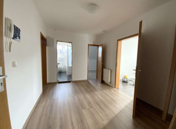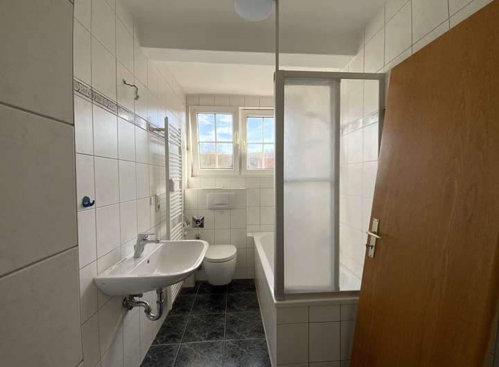 Wohnzimmer, Schlafzimmer, zwei weitere Zimmer, Küche inklusive Einbauküche, Bad mit Wanne, Flur, Keller, Waschraum