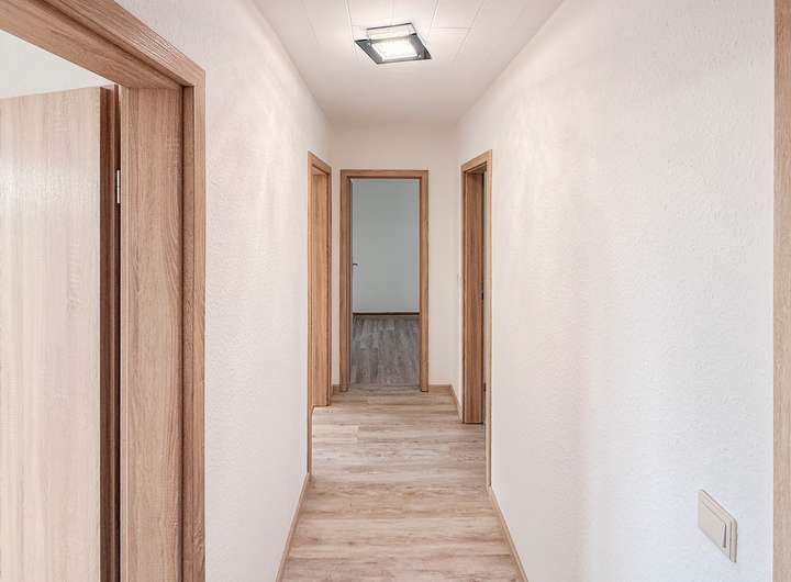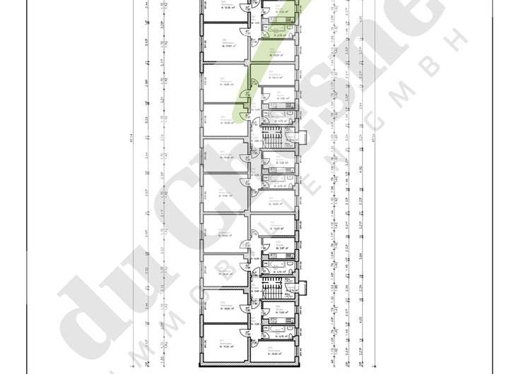 Das Objekt umfasst zwölf gut geschnittene 3-Raum-Wohnungen mit jeweils ca. 60 m² Wohnfläche, verteilt auf drei Hauseingänge mit je vier Wohneinheiten. Die Gesamtwohnfläche beträgt rund 720 m². Jede Wohnung verfügt über eine Küche, ein Tageslichtbad sowie einen separaten Kellerraum und ein Dachbodenabteil. Zusätzlich stehen pro Aufgang zwei Gemeinschaftskeller zur Verfügung.