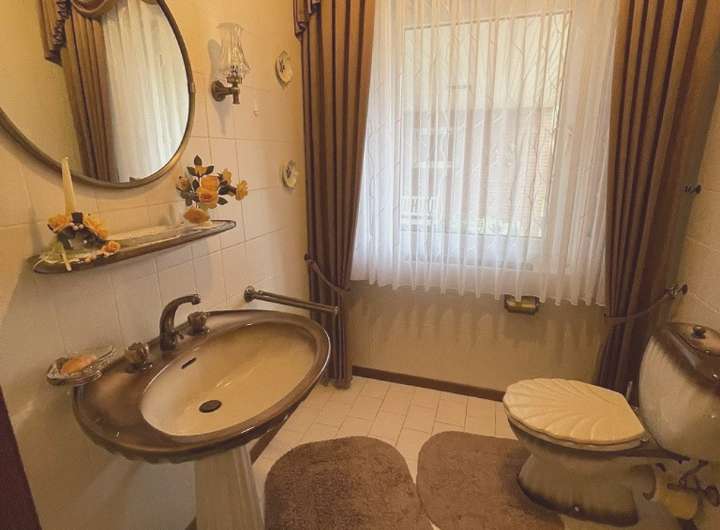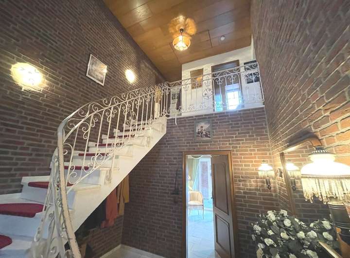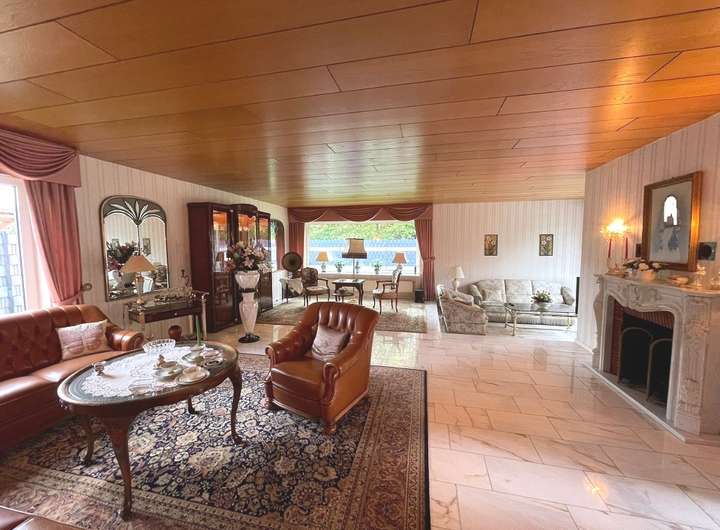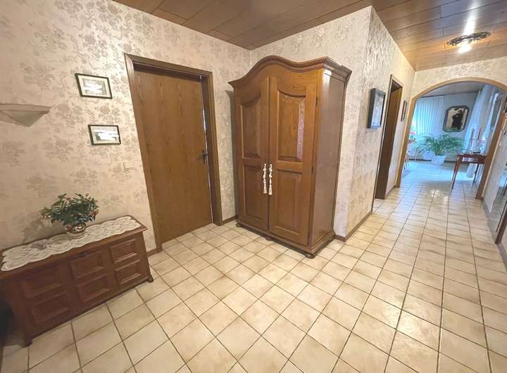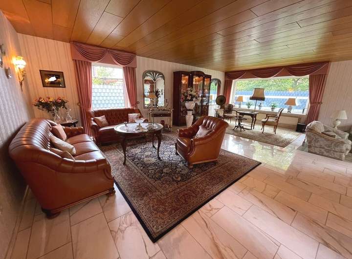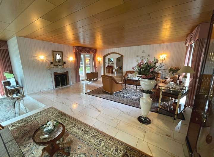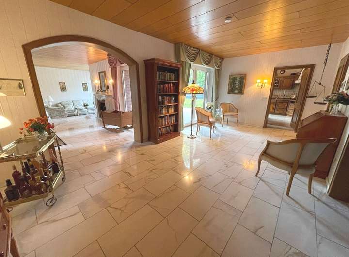 Die edle Ausstattung, großzügige Raumhöhen und die hochwertige Bauweise verleihen dem Haus einen exklusiven Charakter, auch wenn einige Elemente auf den gepflegten, aber älteren Zustand hinweisen.