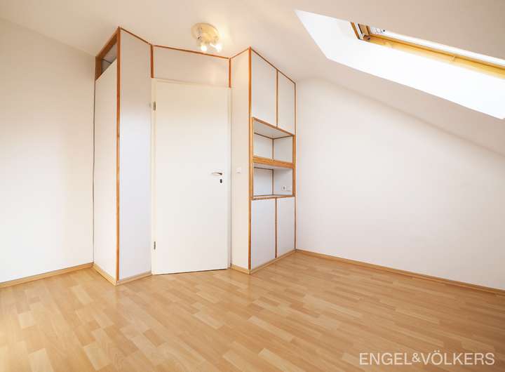 Im Obergeschoss angekommen schließt sich die zweite Wohneinheit über Ober- und Dachgeschoss an. Ca. 141 m² Wohnfläche bieten reichlich Platz für individuelle Wohnträume. Fünf Zimmer, zwei Bäder und eine Küche mit integrierter Küchenzeile eignen sich ideal für junge Familien oder Paare, die großzügiges Wohnen zu schätzen wissen.
