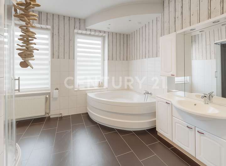 Mit insgesamt sechs Zimmern, mehreren Bädern und durchdachter Raumaufteilung eignet sich dieses Haus besonders für Familien, die Wert auf Platz, Privatsphäre und ein stilvolles Wohnambiente legen. Große Fensterfronten, helle Bodenbeläge und eine harmonische Farbgestaltung prägen das elegante Gesamtbild des Hauses.