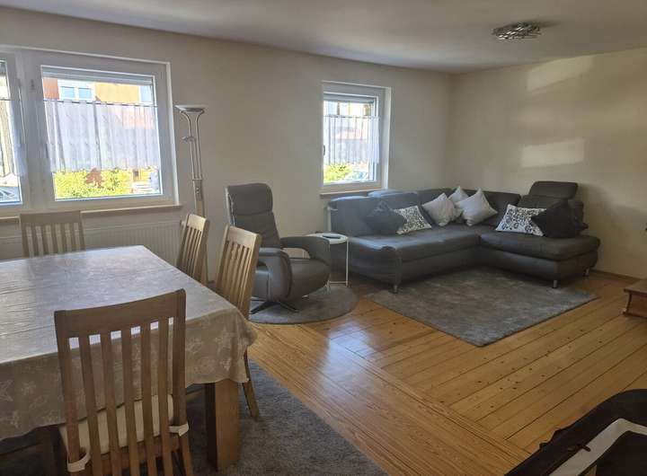 Beim Betreten dieser charmanten Doppelhaushälfte gelangen Sie zunächst in einen einladenden Eingangsbereich, der Ihnen einen ersten Eindruck von der durchdachten Raumaufteilung vermittelt. Direkt angrenzend befindet sich das helle Wohnzimmer, das durch große Fensterflächen viel Tageslicht bietet.Der Wohnbereich ist großzügig gestaltet und bietet ausreichend Platz für gemütliche Abende mit der Familie.