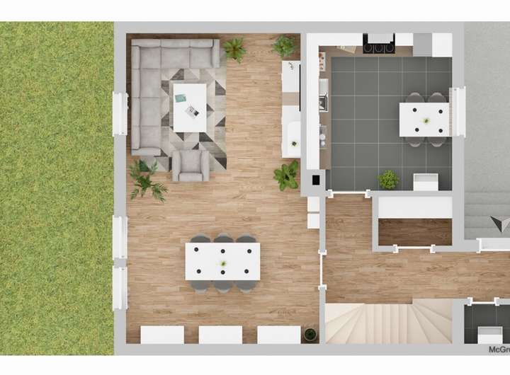 Das Grundstück mit einer Fläche von 395m² bietet ausreichend Platz für Freizeitaktivitäten im Freien. Der Garten lädt zum Spielen, Entspannen und Gärtnern ein und ist ein idealer Rückzugsort für die ganze Familie.