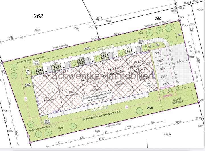 Geplant ist der Bau von fünf Reihenhäusern mit identischem Grundrisskonzept: