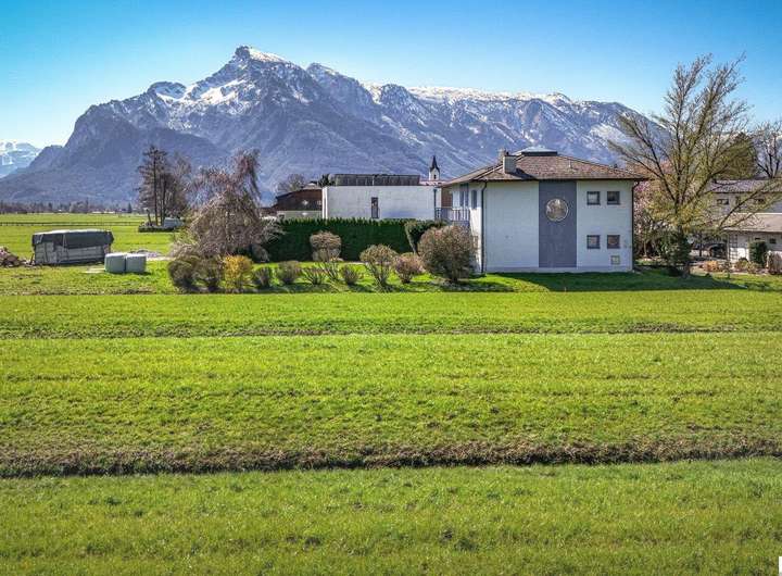 Der Autobahnknoten Salzburg-Süd (A1 / A10) liegt circa fünf Kilometer, der Flughafen Salzburg W. A. Mozart ungefähr sechs Kilometer entfernt. Die unmittelbare Umgebung ist von aufgelockerter Ein- und Zweifamilienhausbebauung sowie ausgedehntem Grünland geprägt; freie Sicht auf das umliegende Bergpanorama unterstreicht die besondere Wohn- und Freizeitqualität.
