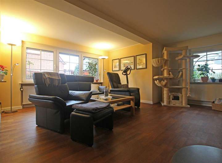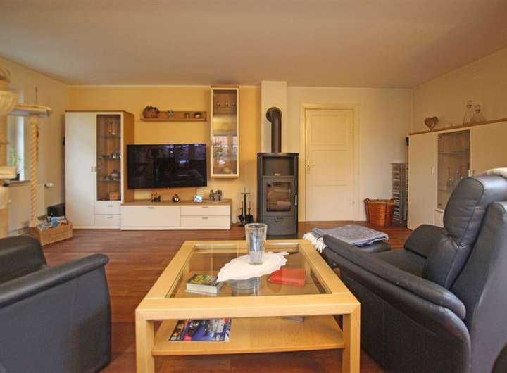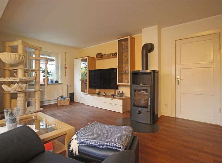 - Großzügiges Wohnzimmer (ca. 25,58 m²) mit Kaminofen (Baujahr 2015)