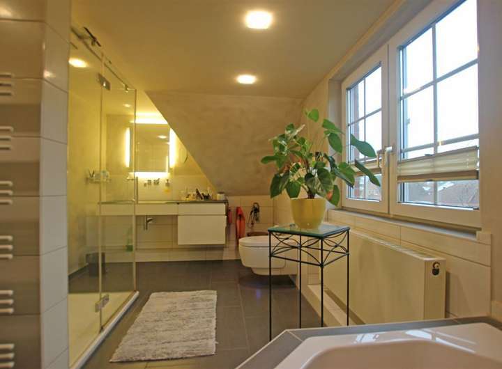 - modernes Vollbad (2014) im Dachgeschoss mit Fenster und Dusche sowie Dusch-WC