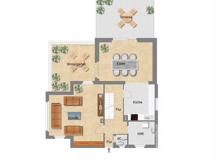 - Zugang zur Terrasse über den Wintergarten oder direkt aus dem Garten