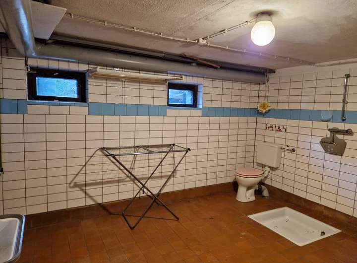 Im Kellergeschoss befinden sich mehrere Vorrats- und Abstellräume, eine Waschküche, die Garage und die Heizung.