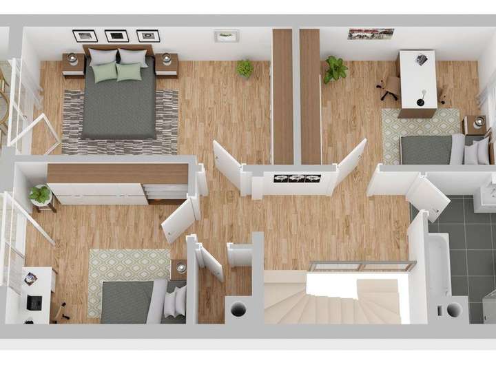 Auf drei Wohnetagen hat eine große Familie Platz, oder das, als Wohnung ausgebaute, Obergeschoss kann für Homeoffice bzw. Bürofläche dienen. Auf rund 170 m² Wohnfläche verteilt auf 3 Wohnetagen und einer Grundstücksgröße von ca. 331 m² bietet dieses Haus großzügige sechs Zimmer, darunter vier Schlafzimmer und zwei Bäder.