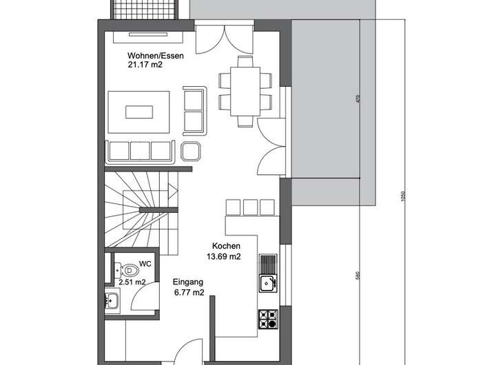 Vollwertig als Wohnraum ausgebautes Untergeschoss
