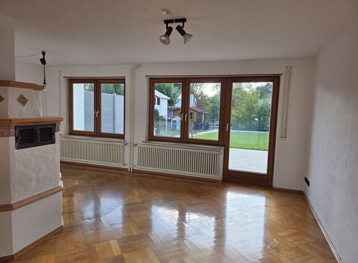 Kachelofen, Eichenparkett und einem ebenerdigen Ausgang durch das Wohnzimmer zum Garten.
