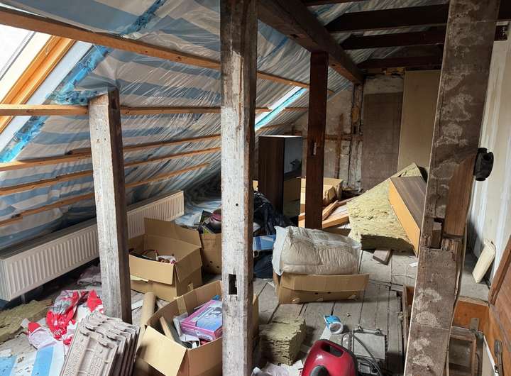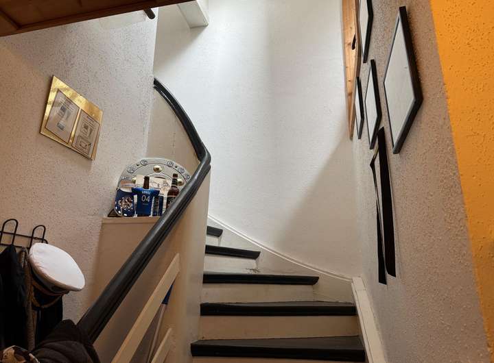 Das Haus hat bewegte Zeiten erlebt: Im Ersten und Zweiten Weltkrieg wurde die vordere Gebäudefront beschädigt und nach Kriegsende originalgetreu wiederaufgebaut. Daher weist der vordere Bereich des Obergeschosses heute eine Bodenunebenheit auf. Die Substanz ist dennoch solide – von einem statischen Problem ist keine Rede sein. Mit überschaubarem Aufwand lässt sich dieser Bereich bei Bedarf ebnen und aufwerten.