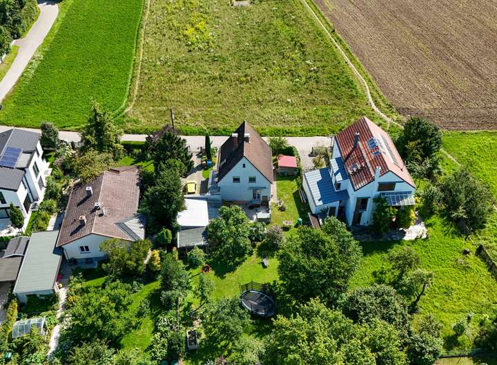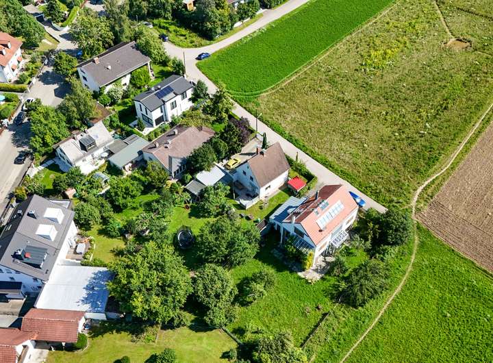 Die Anbindung ist komfortabel: In fußläufiger Entfernung befindet sich eine Bushaltestelle, die den Stadtteil an das Münchner Verkehrsnetz anschließt. Der S-Bahnhof Allach ist rund 3,8 km entfernt und verbindet mit der Linie S2 direkt in die Innenstadt. Mit etwa 12 km Entfernung liegt das Münchner Zentrum gut erreichbar, ebenso wie der Flughafen (ca. 32 km). Einkaufsmöglichkeiten, Schulen und Kinderbetreuungseinrichtungen befinden sich in naher Umgebung, sodass das Grundstück besonders für junge Familien attraktiv ist.