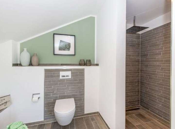 Ein Gäste-WC ist nebenan und auch für Homeoffice-/ Hobby-Tätigkeiten gibt es im Erdgeschoss ein extra Zimmer.
