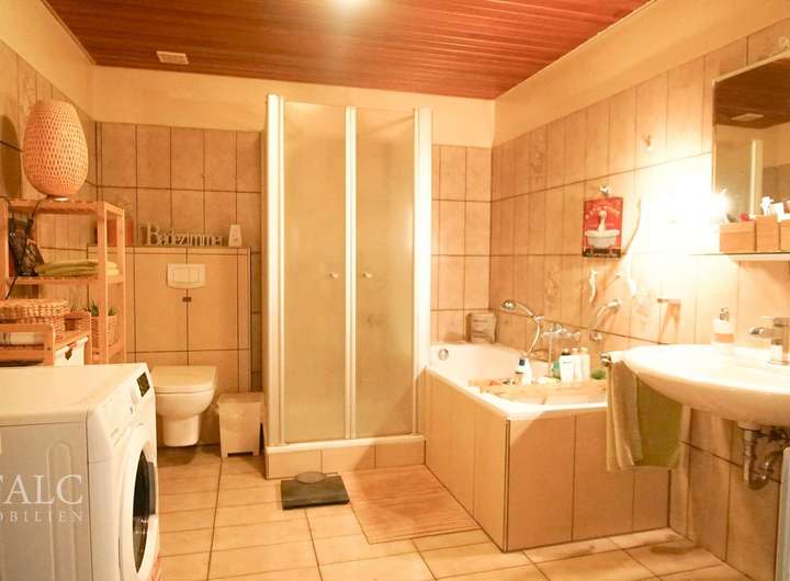 Das Hauptbadezimmer ist mit einer Badewanne und einer separaten Dusche ausgestattet, was den täglichen Komfort erhöht.