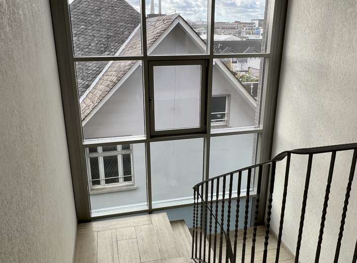 Diese außergewöhnliche Maisonettewohnung mit Fußbodenheizung befindet sich im 3. und 4. Obergeschoss eines gepflegten Wohn- und Geschäftshauses – ohne Aufzug und ohne Keller. Die Wohnfläche beträgt ca. 113 m². Die Wohnung wurde frisch und hochwertig renoviert: Der Bodenbelag und die Fußleisten wurden erneuert, die Wände mit neuem Wandbelag versehen und frisch weiß gestrichen. Zudem wurden das Geländer des Treppenaufgangs, die Empore sowie die Türzargen neu lackiert.