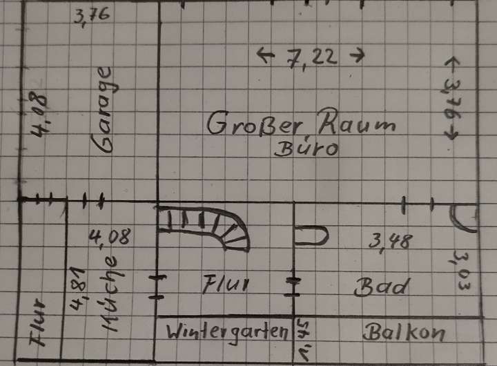 1 Flur 4,14 X 3 / 12,42 m², ½ Wohnfläche.