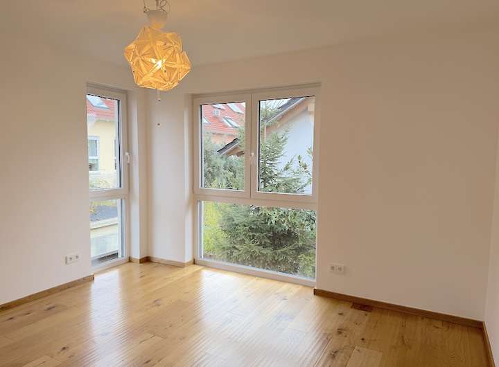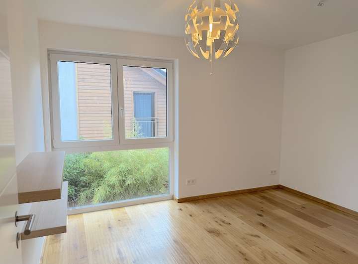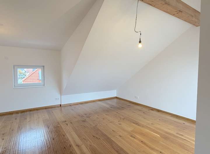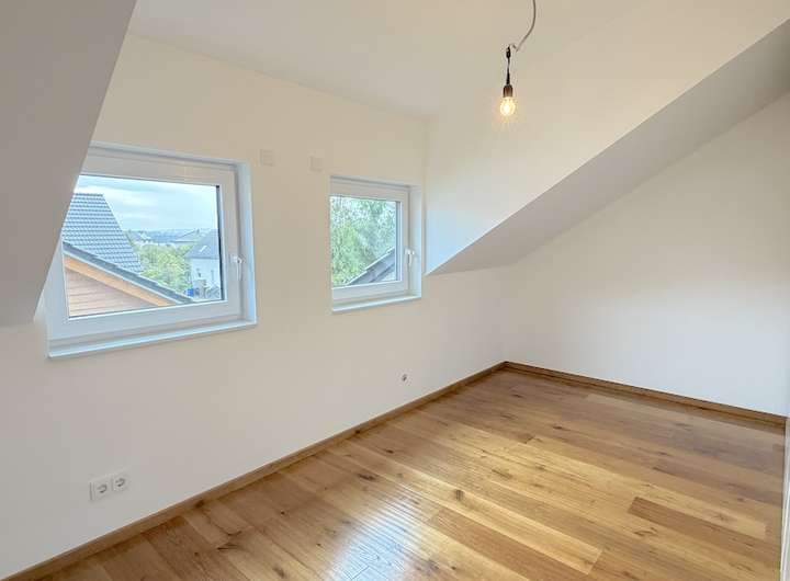 Das Obergeschoss präsentiert sich mit drei großzüzigen lichtdurchfluteten Zimmern, die durch den hochwertigen Parkettboden und der klaren Aufteilung eine warme, einladende Atmosphäre schaffen. Das moderne Tageslichtbad mit Wanne und Dusche lädt zum Entspannen und Verweilen ein.