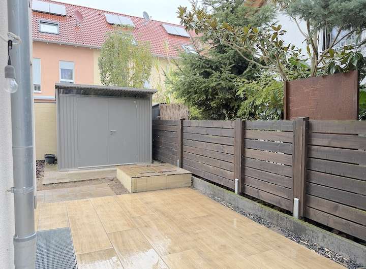 Das Grundstück ist pflegeleicht angelegt und erfordert wenig Aufwand – ideal für alle, die Wert auf Wohnkomfort statt Gartenarbeit legen. Ein PKW-Stellplatz direkt neben dem Haus rundet das Angebot ab.