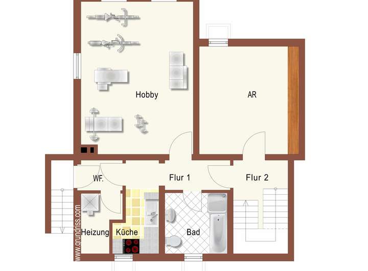 Einliegerbereich im KG: 1 Raum, Flur, Küche, Duschbad.
