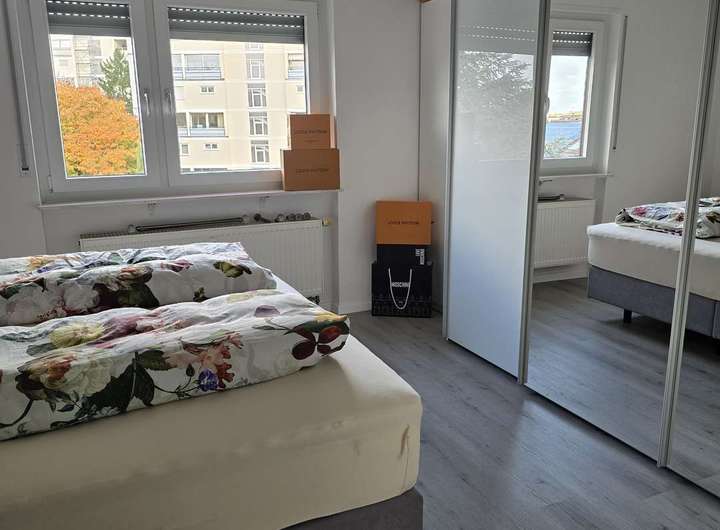 Das Schlafzimmer bietet genügend Platz für ein Bett sowie einen großen Kleiderschrank.