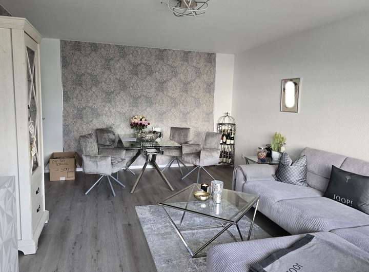 Der größte Raum der Wohnung ist das großzügig geschnittene Wohn- und Esszimmer, das viel Raum zur freien Entfaltung bietet.